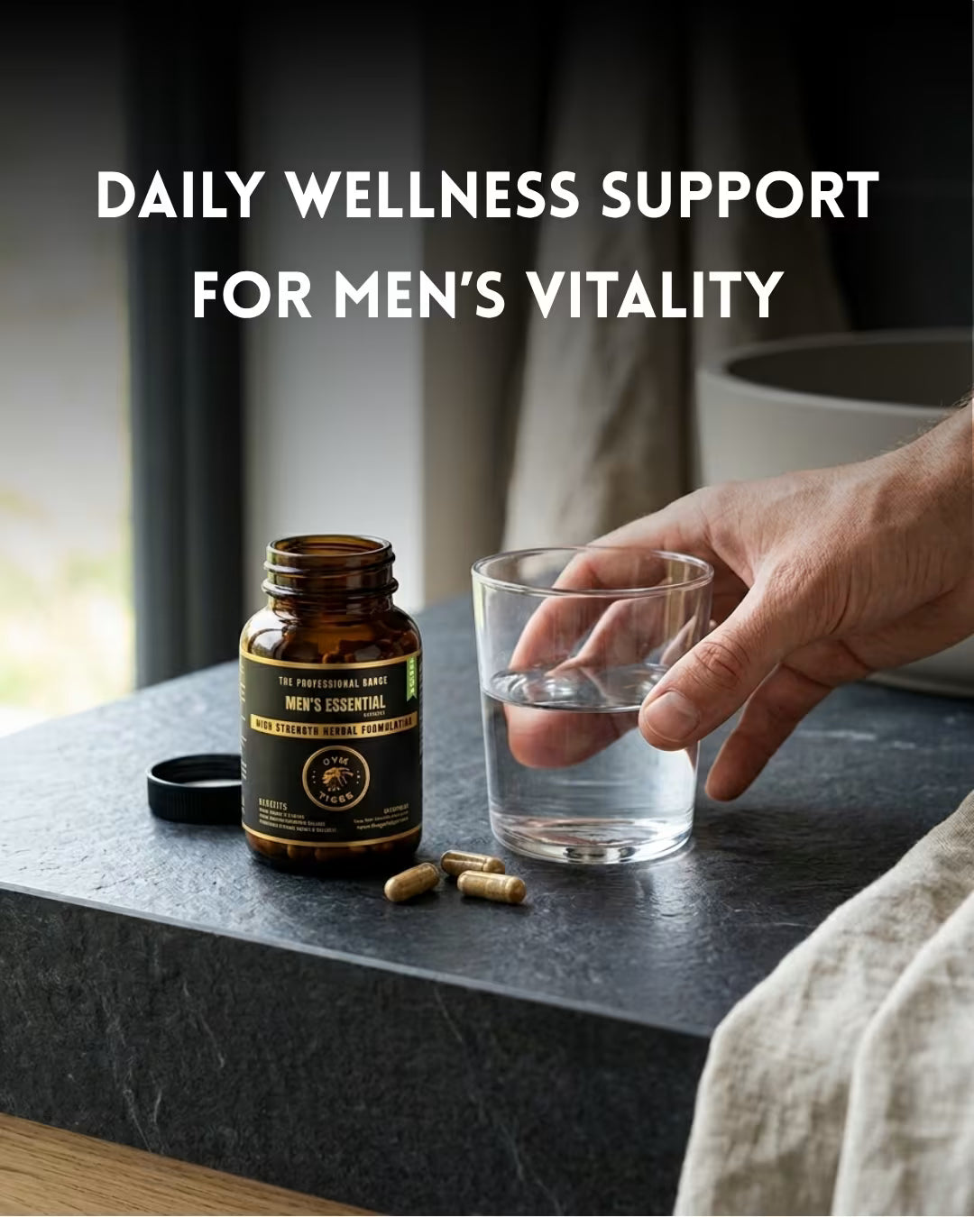 Gym Tiger Men’s Essential Capsules are a daily dietary supplement formulated to support general wellbeing, energy maintenance, and overall vitality as part of a balanced lifestyle. Crafted with a blend of botanical extracts, minerals, and traditionally used ingredients, this formula is designed for men seeking nutritional support for everyday wellness.